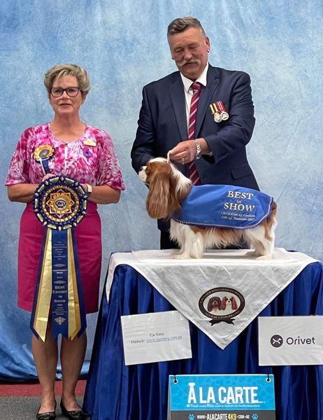 A dream has come true with every breeder striving to acheive a BIS at a specialty. This dream has now come true for us with CH Chevalove Baktodafuture, Marty, being awarded this honour under esteemed Spaniel Judge Karin Linde Klerholm