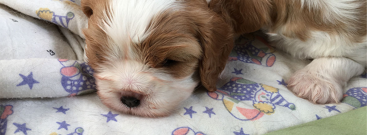 A Winston / Lara daughter who at her first shows was awarded two Baby Puppy in Groups. A promising young Blenhien bitch.
